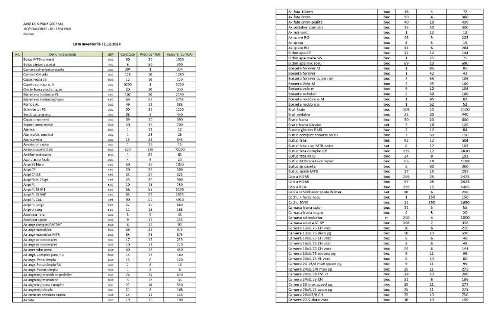 1️⃣🚴🔧 Mărfuri: accesorii & piese biciclete + componente antene DTH** – 149.110,00 lei